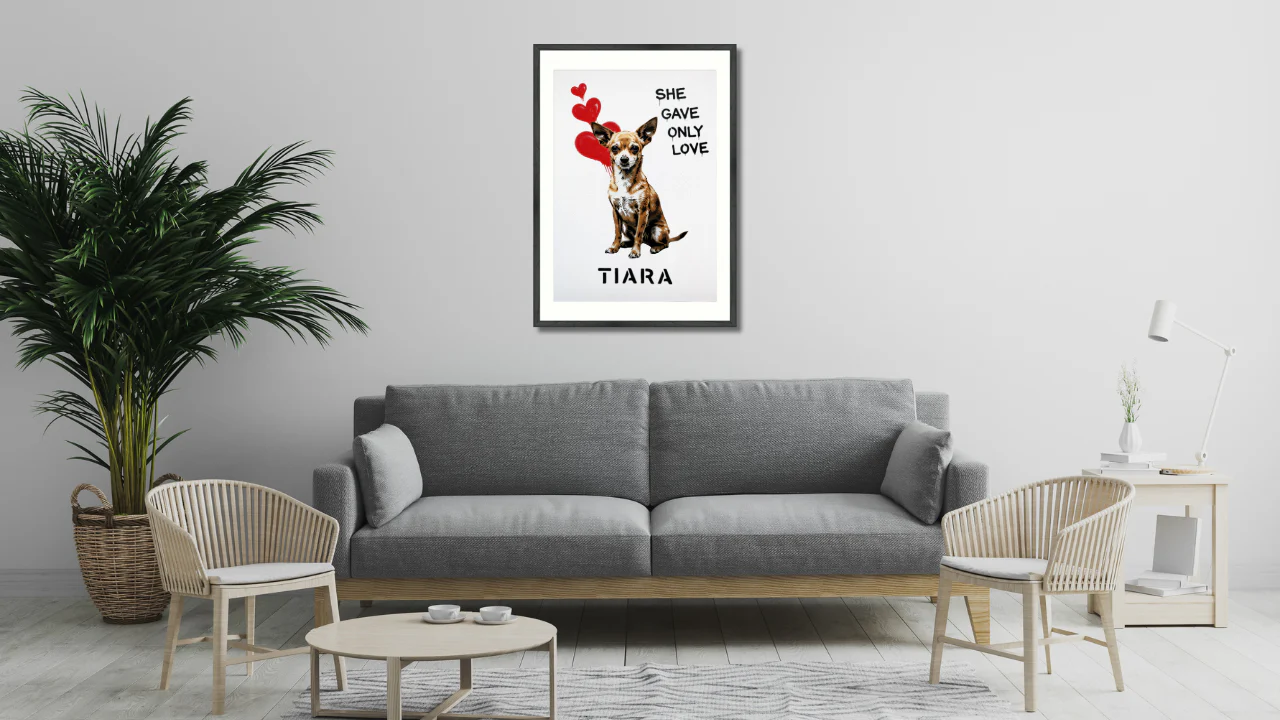 LuvDogのアートは、グラフィティ、ストリート、クラシック、そして犬たちの存在感を融合させた唯一無二のビジュアルで、飾るだけで、空間が“語り出す”。